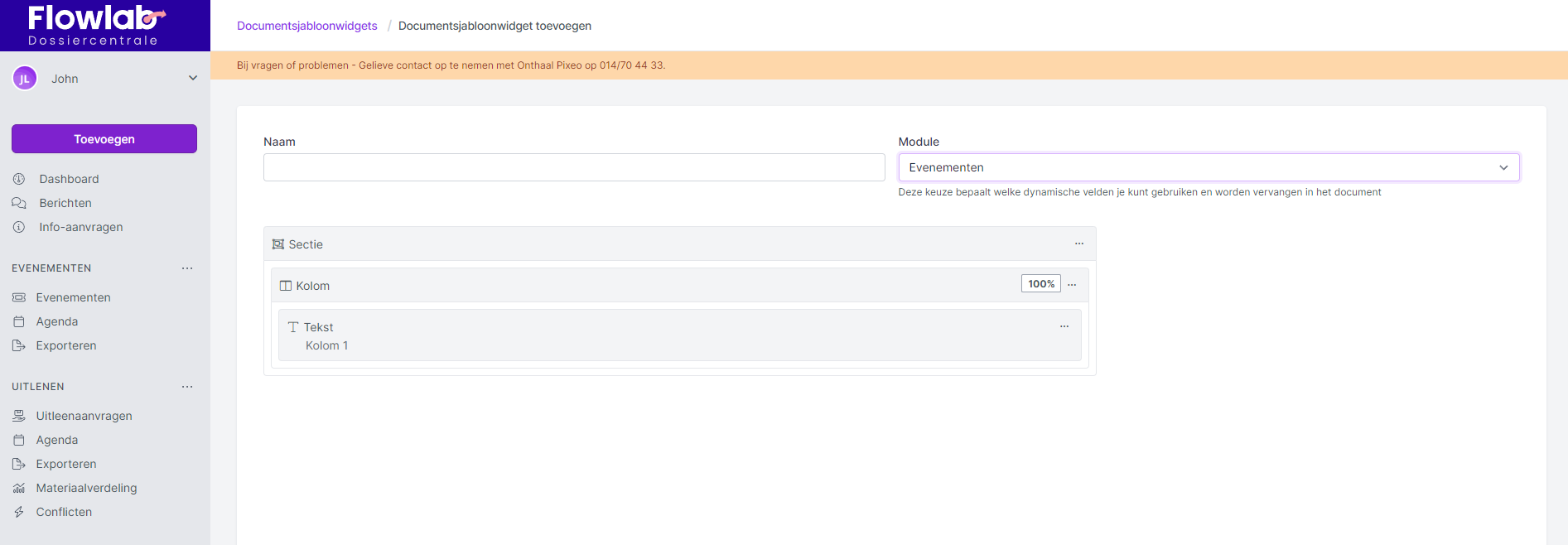 - Geef het widget een naam en kies de module waarvoor je het widget wil gebruiken bij de sjablonen.