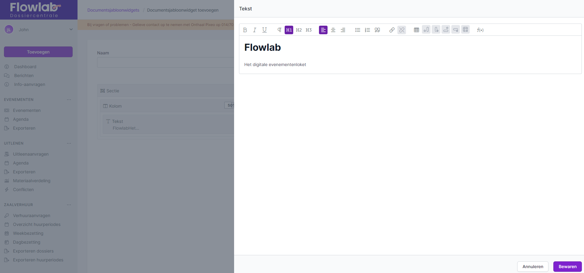Zo kan je bijvoorbeeld met een documentsjabloonwidget een hoofding opmaken. In elk documentsjabloon kan je daarna heel makkelijk met 1 klik dit widget (met hoofding) toevoegen aan je document.