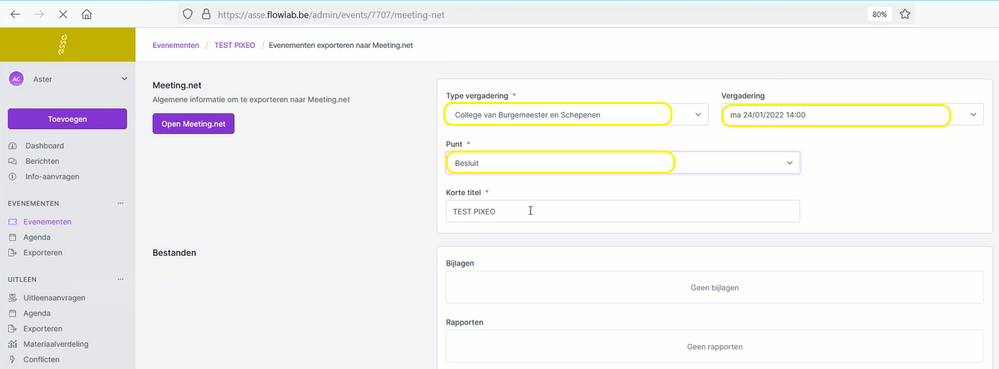Hoe exporteer je een Flowlab evenementendossier naar Meeting.net?