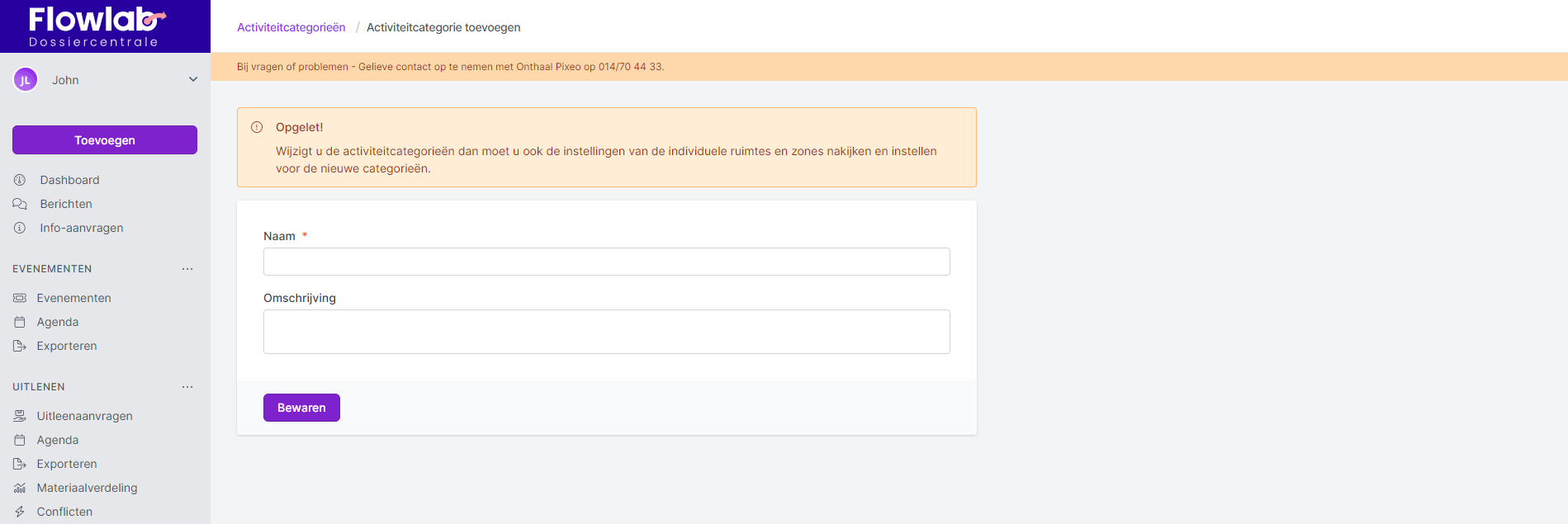 Via de pagina Activiteitscategorieën onder de module Zaalverhuur beheer je de verschillende categorieën van activiteiten die op een locatie kunnen plaatsvinden.