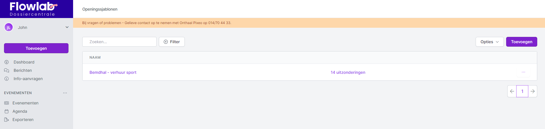 - Selecteer de pagina Openingssjablonen onder de module Zaalverhuur.