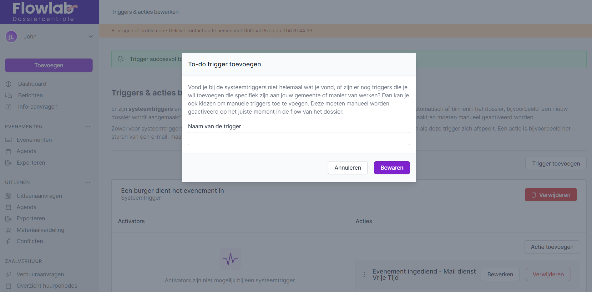 - Geef de trigger op maat een herkenbare naam zodat de dossierbeheerder weet waarvoor de trigger staat.